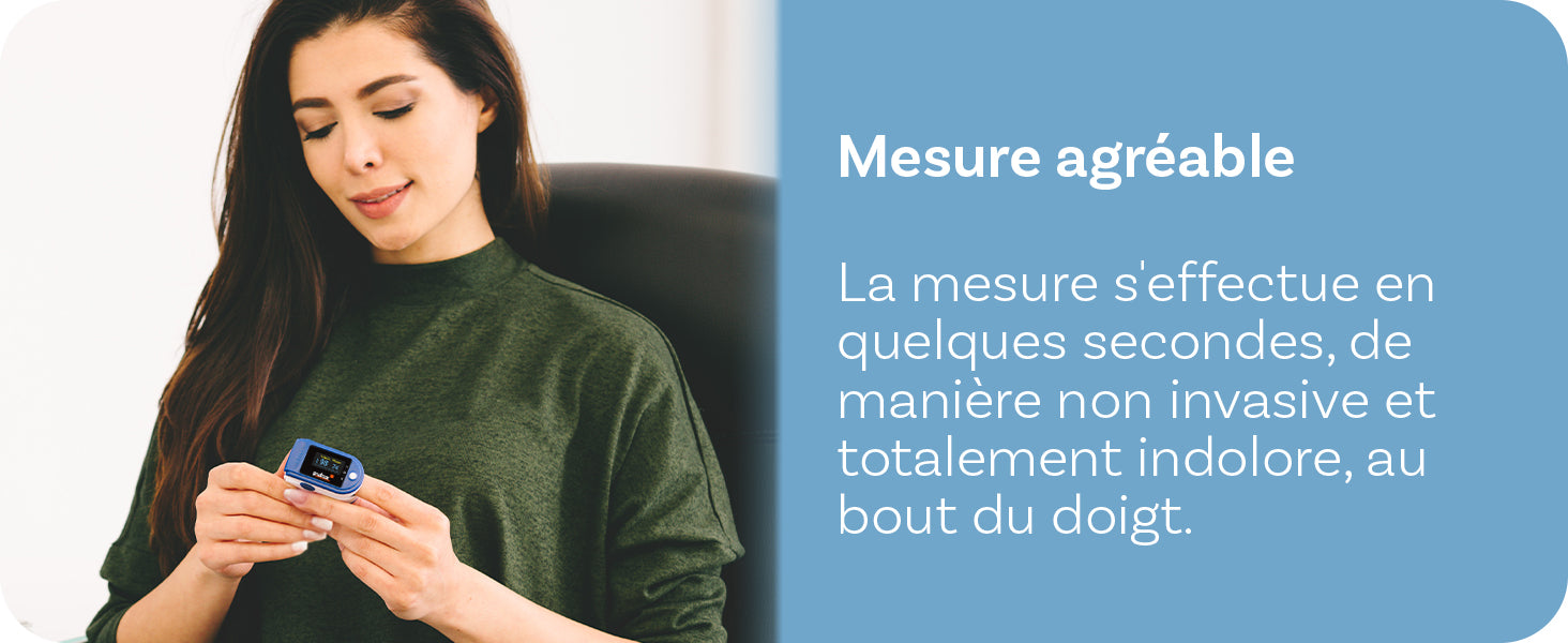 « Très simple à utiliser. Je vérifie mon taux d’oxygène chaque matin, ça me rassure beaucoup. »